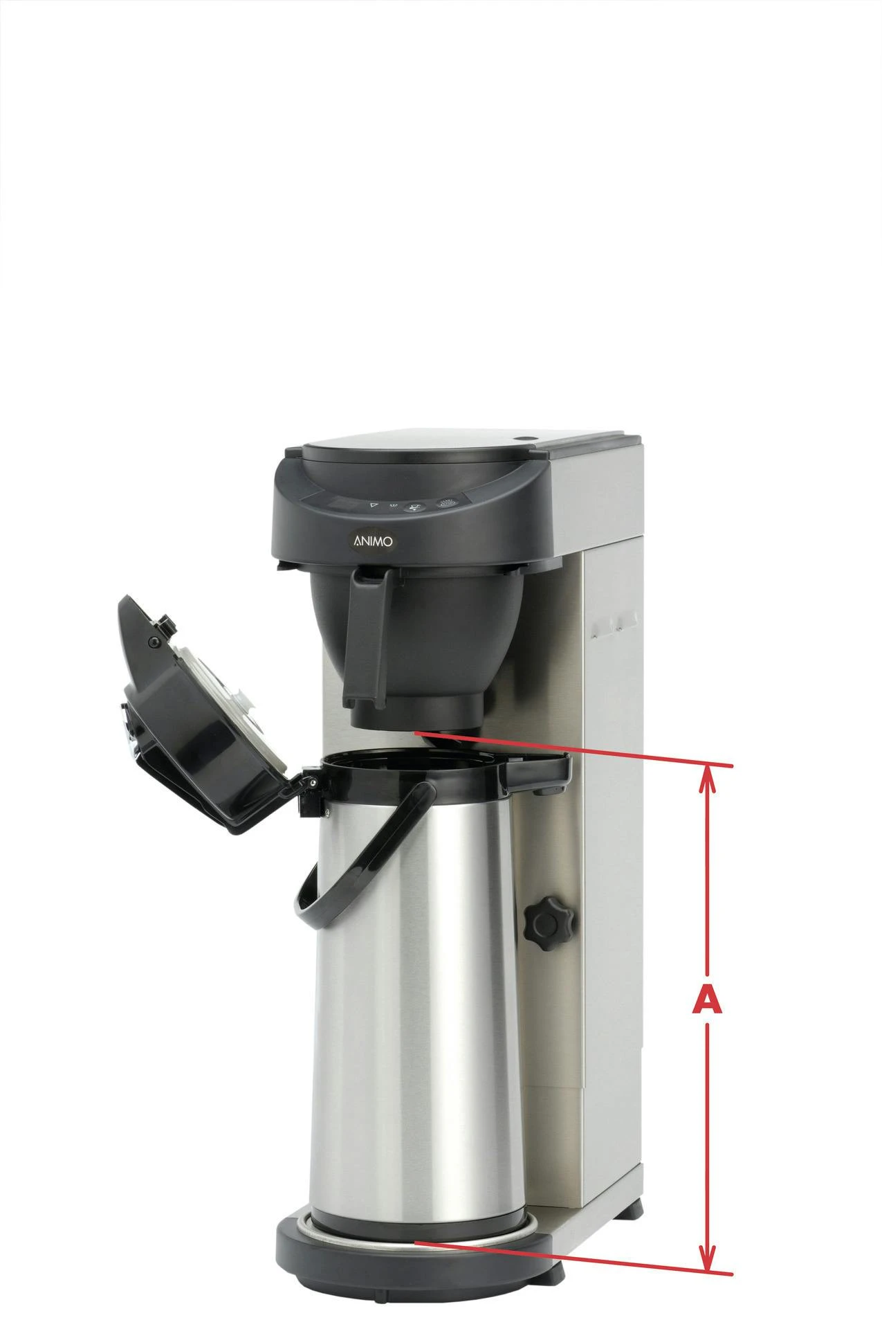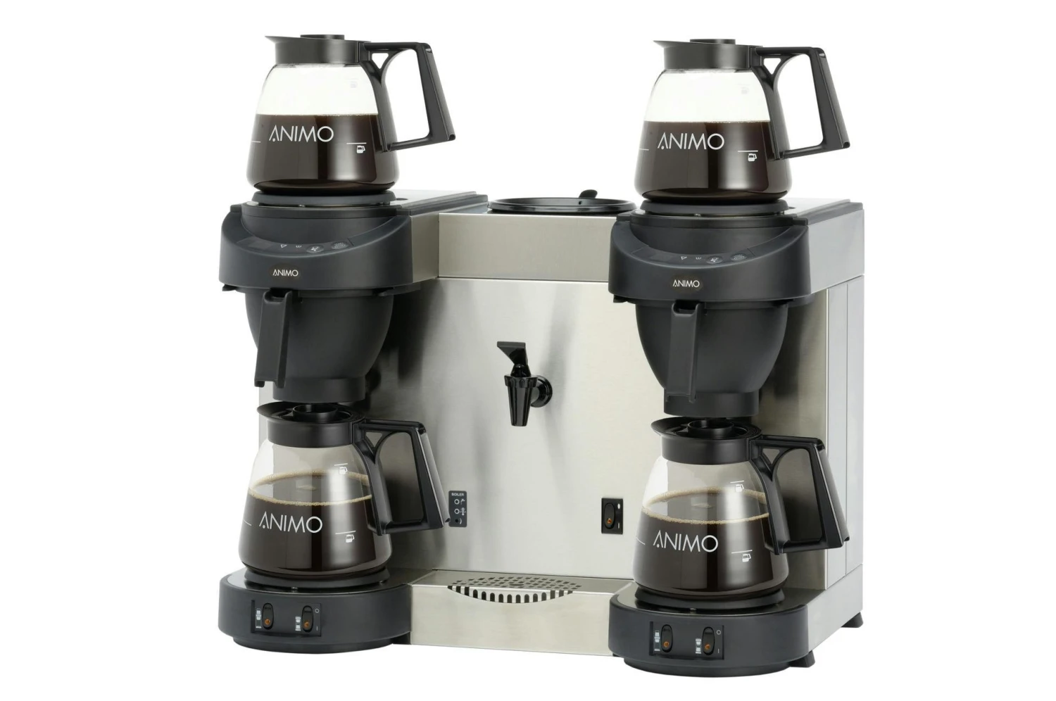 Animo Kaffeemaschine ComBi Line 2x 5W Brühanlage mit transportierbaren Behältern CNe (beheizt). Behälter doppelwandig mit LED Beleuchtung. Über digitales Display erscheint der aktuelle Brühvorgangstatus. Entkalkungsprogramm wird Bild für Bild im Display