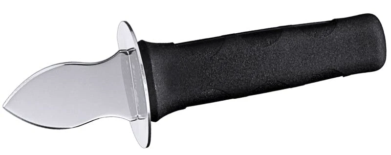 Austernbrecher, aus Messerstahl, mit hell lackiertem Holzgriff und Fingerschutz