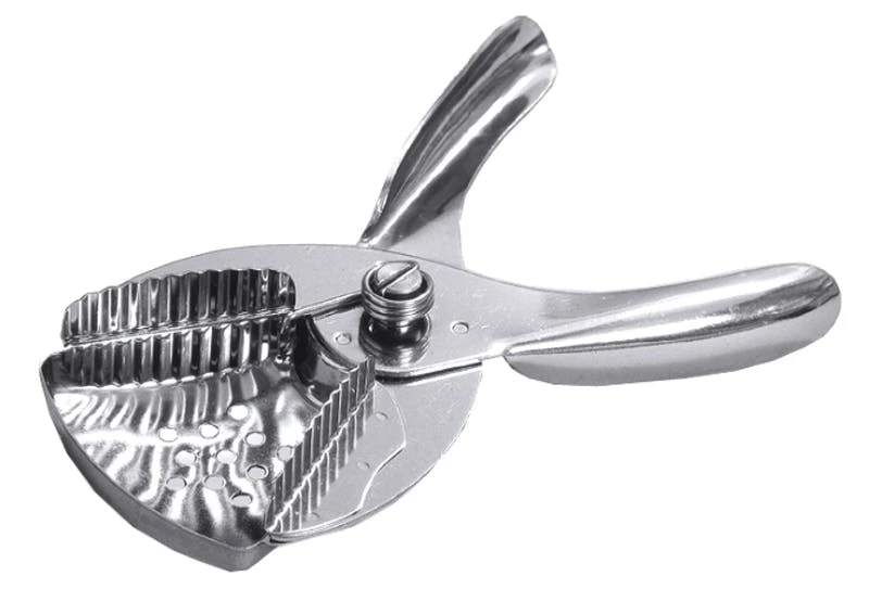 Orangensaftpresse, aus verchromtem Zinkguss, hochglänzend, mit herausnehmbarem Einsatz aus Edelstahl 18/10, mit rückfederndem Hebel