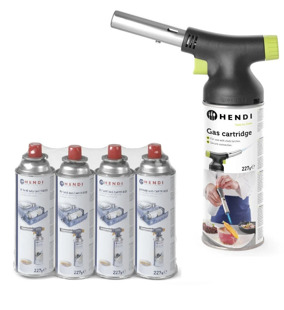 Set HENDI Crème-Brûlée-Brenner Concept Design + 4 Stk, 68mm HENDI Butan Gaskartuschen